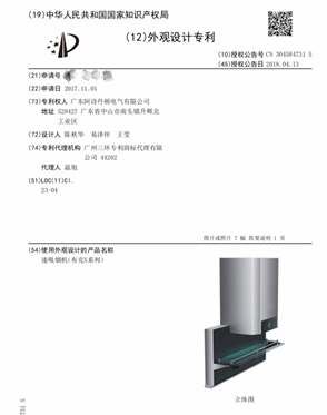 据悉,2017年11月1日,布克向国家知识产权局申请了名为“速吸烟机(布克X系列)”的外观设计专利。2018年4月13日,布克获得专利号为ZL201730529401.0的专利授权。目前,该专利仍处于有效法律状态。