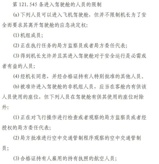 根据相关规定,在飞行中只有以下人员可以进入驾驶舱:机组成员、民航局监察员、经机长同意并且对安全飞行有益处的人(如苏城奇迹事件中作为乘客乘坐飞机且协助飞行员驾驶飞机的飞行教员)、经机长同意并且航空公司批准的人员(搭便车的航空公司机组人员)。在桂林航空事件中这位拍照的小姐显然并不属于上述情况中的任何一种。