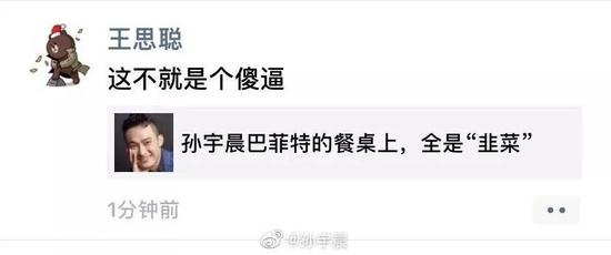 在王思聪发布该微博4个月后,孙宇晨在一档脱口秀节目中评价王思聪“高帅是假的,只有富是真的”。