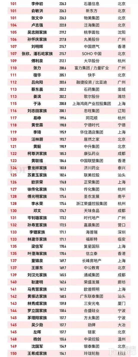 福布斯中国富豪TOP150
