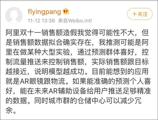 同时,有网友认为,数据造假可能性不大,但销售额数据拟合确实存在,他推测阿里通过预测群体喜好控制流量推送来控制销售额,实际销售额跟目标越接近,说明模型越成功。