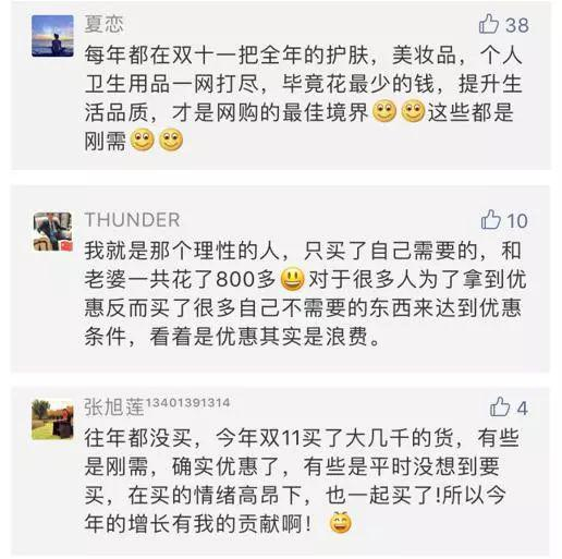 有网友表示双11理性剁手,买了一年的刚需: