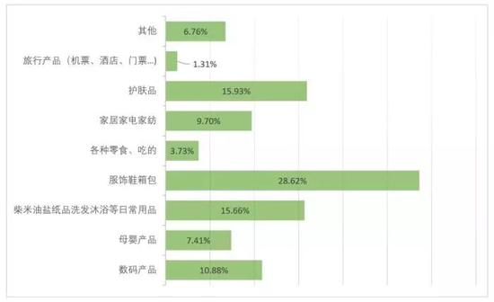 近3成的人买了服饰鞋箱包;