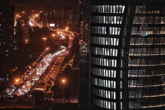 夜幕中的丽泽SOHO宛如“夜空之眼”。摄影/新京报记者 王嘉宁