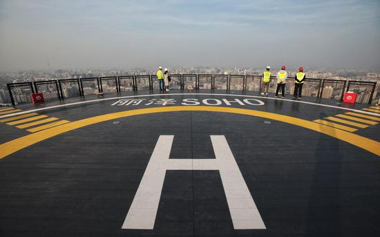丽泽SOHO建筑顶层设计为救援飞机停机坪。摄影/新京报记者 王嘉宁