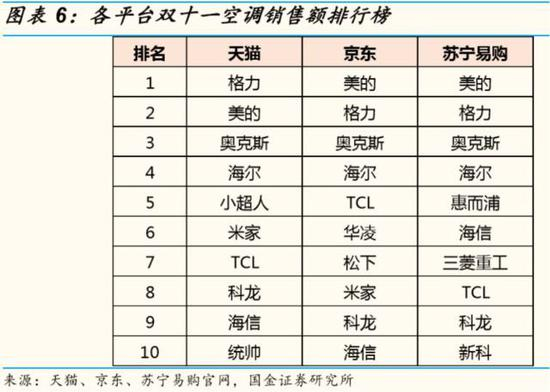 图2:“双11”空调品牌电商销售榜单