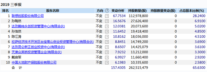 截至三季报,联想控股为第一大股东,持股28.24%。拉卡拉的实际操盘者、董事长孙陶然为第一大股东,持股6.91%。另外,雷军虽未进入拉卡拉前十大股东,但持股1.02%。