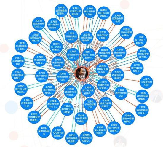 普思投资注册资金2000万,王思聪占比100%。以这家公司为核心,王思聪发展出了大约60家公司,其中担任法人的有20家。