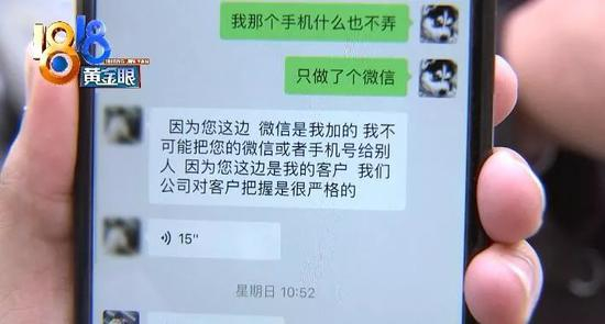 第一个和他通话的中介小叶,当时和他加过微信。对方在微信上说,没有泄露过他的号码。
