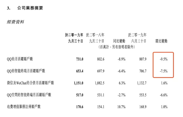 而QQ目前也面临着用户活跃度下降的压力。11月13日,腾讯公布了的2019年第三季度财报就显示,