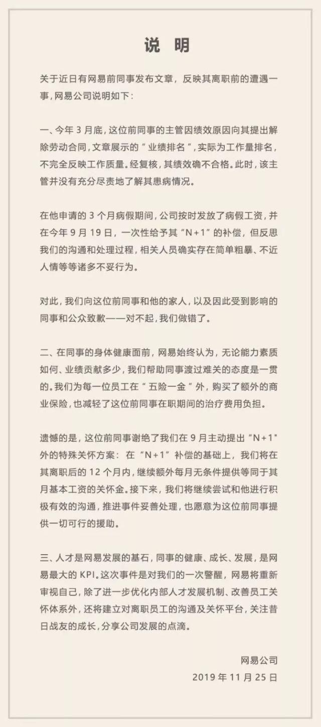 近日,一篇关于“网易暴力裁员”的文章登上热搜,作者阐述自己在身患绝症的情况下被赶出公司。25日,网易公司对此回应,相关人员存在简单粗暴、不近人情等诸多不妥行为,并表示向这位前同事致歉。