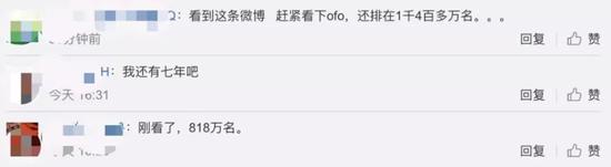 在ofo小黄车推出“天天返钱”这一活动后,网友们纷纷晒出自己目前的排队情况,有网友表示:“一年多了,我还排在一千四百多万名。”