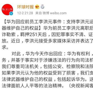 针对因公司举报,而蒙冤被关251天的前华为员工李洪元,华为的表态如下: