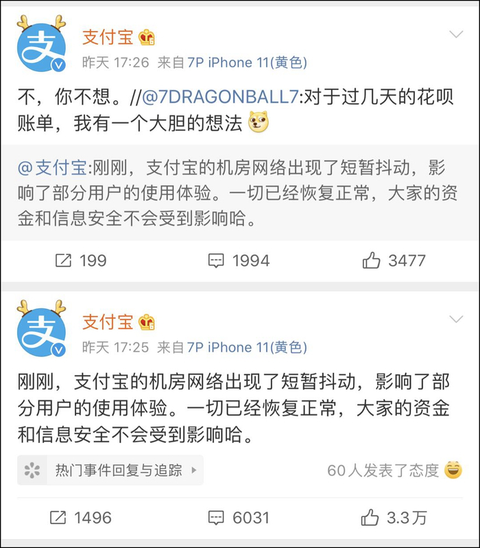 支付宝崩溃上热搜 网友:是不是花呗可以不用还了?