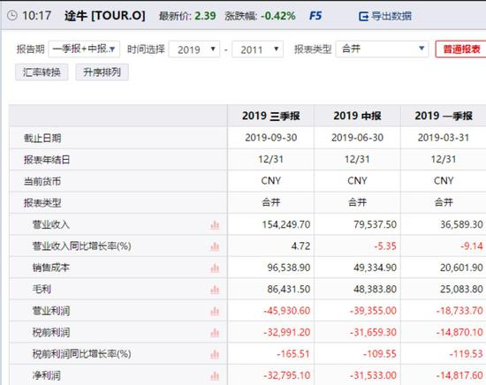 持续亏损已经成为途牛的业绩常态,2019年三季度财报也不例外。
