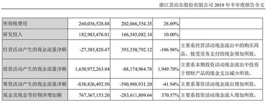根据2019年半年报,苏泊尔营收近98.36亿元,同比增张11.15%。计算可知,苏泊尔研发经费不到营收的2%。
