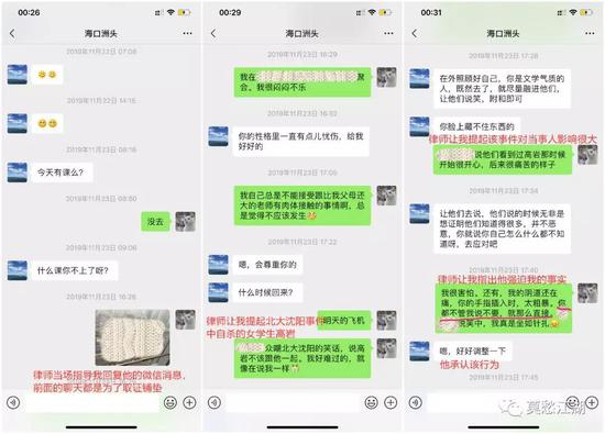 至此,他进一步承认了11月16日课后他将我锁在车内的性骚扰行为。万律师发了一条朋友圈:“东部名校叫兽骚扰的女生,经两个小时的指导,已经能够独立与在叫兽聊天中固定下违法事实。再次深感:她们缺乏的不是勇气,而是支持。”