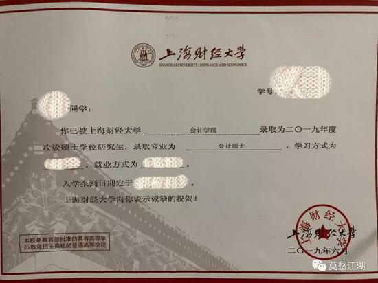 经过全国研究生统考和学院复试后,2019年6月,我被上海财经大学会计学院正式录取为会计硕士。但我没想到的是,自己对于知识的渴求反而成了噩梦:我在上财会计学院读的第一门课程的任课教师钱F胜教授,以讲题为由把我骗到车里,将我锁在车内实施性骚扰,整个过程就发生在上财中山北一路校区校园内。