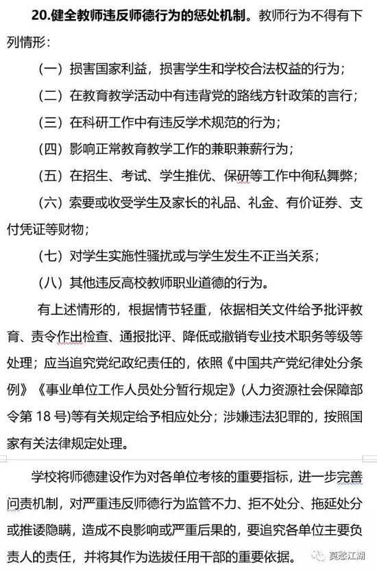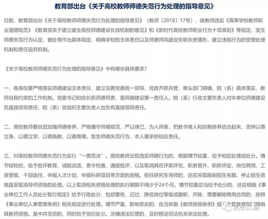 《教育部关于高校教师师德失范行为处理的指导意见》指出:“对高校教师师德失范行为实行一票否决。”(参见上海财经大学的相关网页https://cob.sufe.edu.cn/Home/Detail/13251)