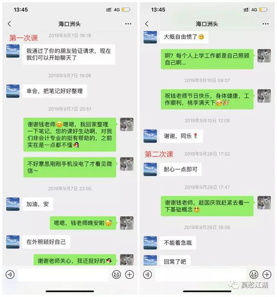 回到家后,我又陆续收到钱教授发来的微信,大意是很高兴认识我并让我好好整理笔记,于是我也很有礼貌的回复他。没想到,晚上十点多,他又发来了“安”、“照顾好自己”以及“大概自由惯了”等消息。当时我觉得有些奇怪,但是也没有多想,也礼貌的回复了他。在几天后的教师节,我也给包括他在内的老师们发了祝福消息,他也回复了我。