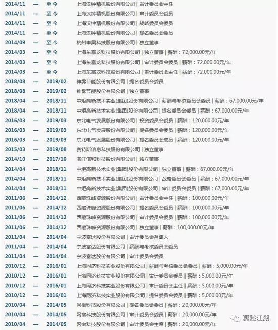 在Wind软件上打开人物库(PEOP)页面搜索名字可以看到,钱教授目前兼任中国建材、东北电气、汉钟精机、申昊科技、东富龙等5家上市公司的独立董事,并在审核委员会、薪酬委员会、战略委员会、提名委员会、投资委员会等部门任职;曾经兼任神雾节能、中炬高新、西藏珠峰、宁波富达、同济科技、网宿科技、泰尔重工、中国巨石等8家上市公司的独立董事及其他相关职务。