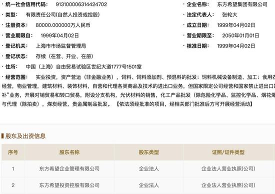 工商资料显示,东方希望企业管理有限公司、东方希望投资控股有限公司的法定代表人均为张轮大。东方希望旗下子公司东方希望铝业有限公司的法定代表人、董事长、总经理也为张轮大。