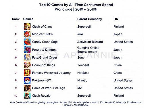 在玩家花销排行榜上,国内腾讯的王者荣耀和网易的梦幻西游上榜。