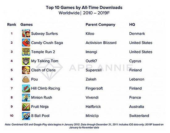 以下是2010年代下载次数最多的10个应用。2019年本身已经见证了TikTok和Likee等社交视频应用的稳定增长。App Annie发现,本年度许多下载量最高的应用程序也是十年来下载量最大的应用程序。