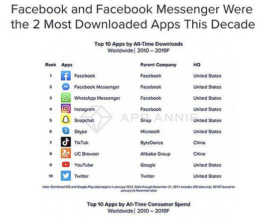 App Annie发布过去十年最受欢迎应用:Facebook居榜首