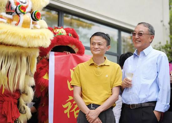 2013年5月10日,辞去阿里巴巴集团CEO的马云为太极禅院揭牌。柳传志到场祝贺。