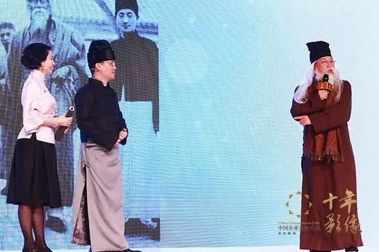 柳传志饰印度诗人泰戈尔,王小丫、张羽分饰林徽因和徐志摩,三人做起了《泰戈尔的21世纪访谈》,穿越并重现名仕精神,出神入化,惟妙惟肖。