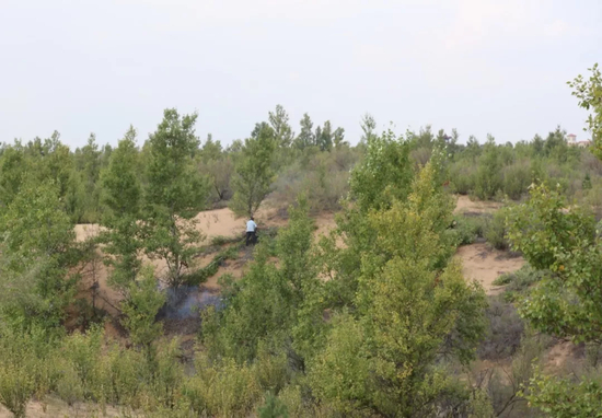 当地村民告诉《财经》记者,伊当湾村北面的林草地,大部分是牛玉琴栽植,也有一部分是殷玉珍栽植的。加之村里每年义务植树,以及实施的京津风沙源治理项目,才把沙丘固定变成了林草地。
