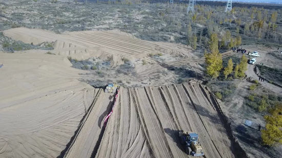 华能陕北光伏项目施工 推平毛乌素沙漠千亩林草地