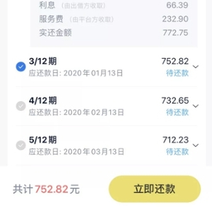 借款人张先生的还款账单显示,其2019年11月在还到借款6000元,分12期还款,每期都会被收取高额服务费,通过IRR公式可以计算出该笔借款年化利率高达65%。