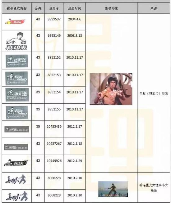 李小龙公司代理律师对部分真功夫注册商标与李小龙形象进行对比。