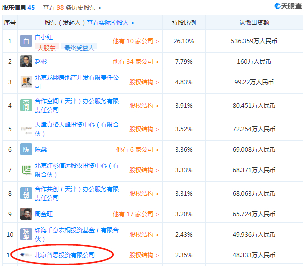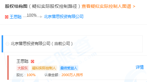 王思聪旗下普思资本持股4.93%,为第四大股东。2017年6月,紫晶存储向达晨创投、普思资本、基石资本等定向增发募资1.64亿元人民币,其中普思资本贡献5000万元。