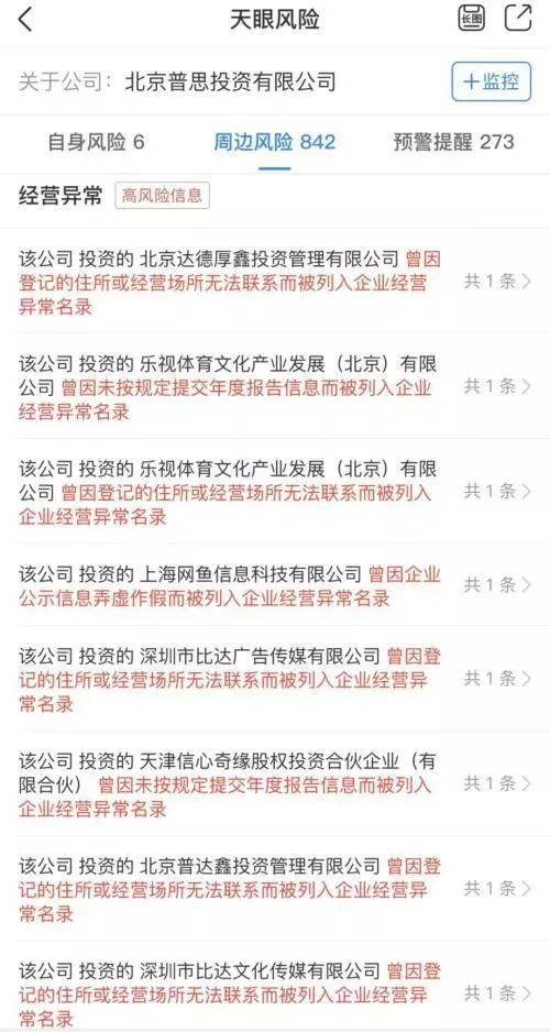 此外,天眼查信息还显示,普思资本所投资的多家公司存在风险。
