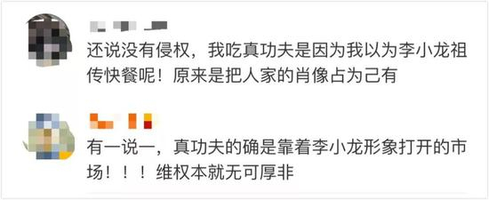 身着黑黄连体衣、双臂挥舞格斗造型的李小龙,一直是中国功夫的经典形象,早已深入人心。而真功夫的品牌形象也是一个穿黄衣服、留锅盖头、摆出拳姿势的人。即使真功夫的品牌形象没有叫李小龙,但将两者放在一起,很难不让人认为它们相似。也难怪网友们表示:“我一直以为,真功夫的广告是经过李小龙家属授权的。”