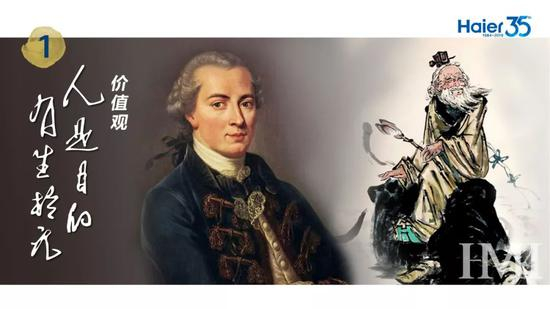 “人是目的”源自于德国的哲学家康德,他说,人是目的,不是工具。每一个人都是他自己的目的,这个目的就是把“我”的才能充分发挥出来。我们探索人单合一,人人创客,就是让每个人把他的才能发挥出来。传统的企业把人当成工具,成为某一个岗位的附庸,或者流水线的一部分,只是为了产出一件产品而已。德国另一位社会学家马克斯·韦伯是资本主义理论的开创者,他在一本非常有名的著作《新教伦理与资本主义精神》中指出,如果没有宗教的改革,就没有资本主义的发展。他在著作中把理性精神为两种,一种是价值理性,一种是工具理性。他希望资本主义能把价值理性和工具理性合二为一,但是他认为资本主义没有做到这一点,因为资本主义更多的发挥了人的工具理性,把人当作工具。而我们今天做到了,我们的人单合一做到了把价值理性和工具理性合一。因为人单合一模式将每个创客为用户创造的价值与其分享的价值合一。说到家,就像康德所说的人是目的。卡尔·马克思也论述过这个命题,他说,所谓的彻底,就是抓住了事物的根本,而人的根本就是人本身,把人作为第一位。具体到我们的实践——人单合一,把每一个员工放在第一位,让员工实现价值再去创造用户价值。