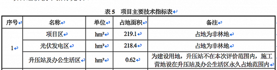 该项目区主要由光伏发电区和办公生活区两部分组成,前者占地面积218.4公顷,为非林地;后者占地面积0.62公顷,为建设用地。