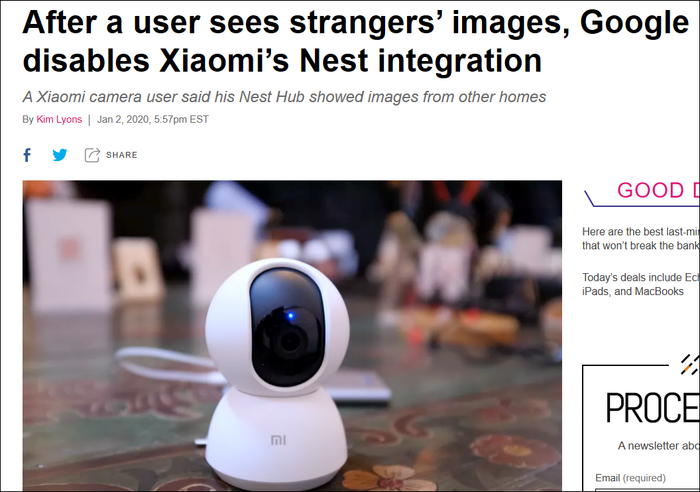 事情起源于小米的一台摄像头,今年初,Raddit论坛的一位网友Dio-V发帖曝光称,他自己刚买的小米米家1080P Smart IP摄像头在集成到了Nest Hub之后,却意外看到了他人家庭中的景象,包括一个睡在椅子上的男人,还有一名在婴儿床上睡觉的婴儿等场景。