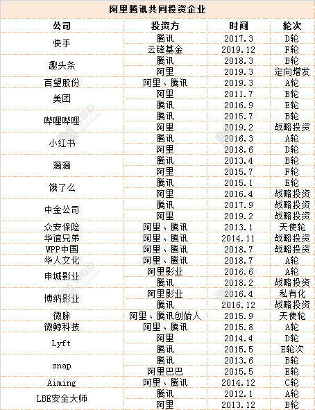 公开资料显示,腾讯曾4次投资滴滴出行,阿里共注资两次;美团点评背后,腾讯出手3次,阿里投资两次。