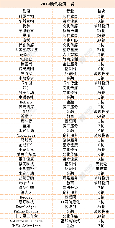 同样在2019年放缓投资脚步的还有,以买遍天下互联网著称的腾讯。