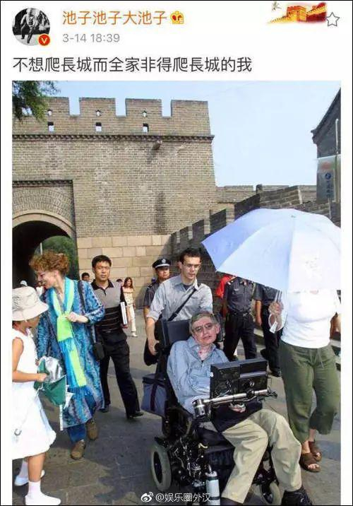 此外,他还曾在物理学家霍金去世当天,用霍金照片配图调侃: