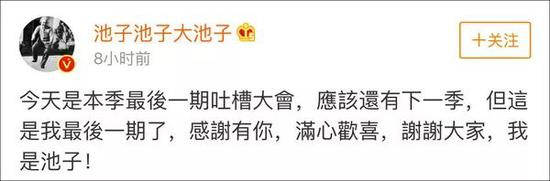 此次风波之前,池子曾于2019年1月7日凌晨发文宣布将退出《吐槽大会》,遭网友调侃“英年早退”。如今发文“开撕”笑果文化,也印证了网友此前对其与笑果“分手”的猜测。