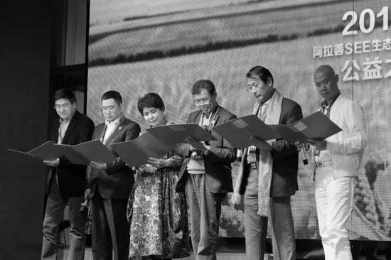 2004年6月5日“世界环境日”,近百名企业家面对茫茫沙漠,宣布成立阿拉善SEE生态协会,并且写下了极具人文色彩的《阿拉善宣言》,讲清协会的愿景、宗旨和未来。