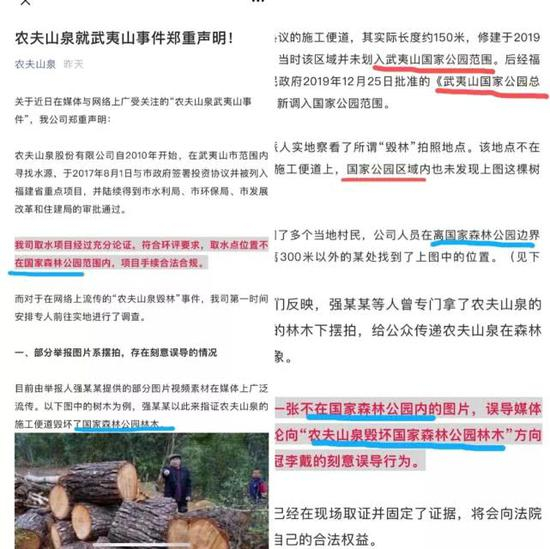1月17日午间,武夷山大安源生态旅游区通过微信再发文《农夫山泉,你欠大安源和公众一个道歉》,对农夫山泉此前声明内容提出质疑。武夷山景区方面表示,声明颠倒黑白,漏洞百出,并提出质问,毁树开辟施工便道的行为,是不是真实存在?是不是贵公司人员所为?违规在武夷山国家公园内施工运输的行为,是不是真实存在?是不是贵公司人员所为?