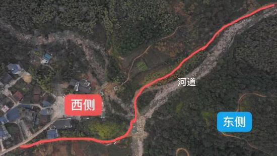 红线为2020年1月1日实际航拍的施工引水管道路线 已经改到河的西侧