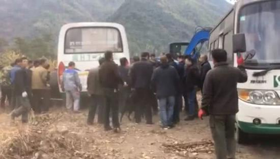 2019年11月26日,我景区准备使用挖掘机将被损毁的区域进行修复种树,但是却在自己的景区范围内,遭到了农夫山泉施工方的非法阻拦。