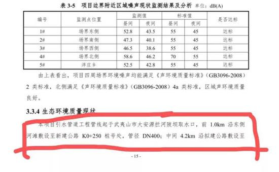 根据武夷山市环保局提供的农夫山泉项目的环评报告表,第15页里明确写道,取水点前1公里管道沿东侧河滩敷设至新建公路K0+250桩号处。